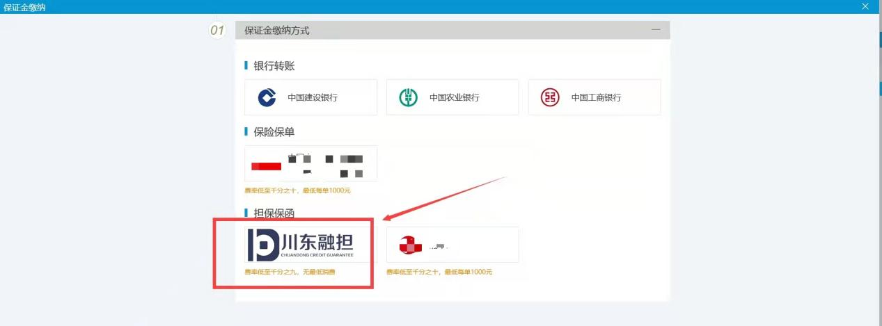 2、选择“川东融担”出具保函