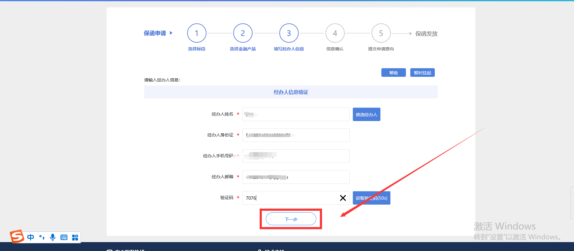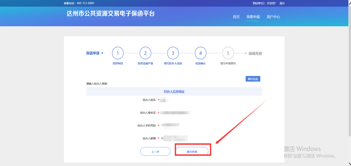 5、填写经办人信息并提交申请