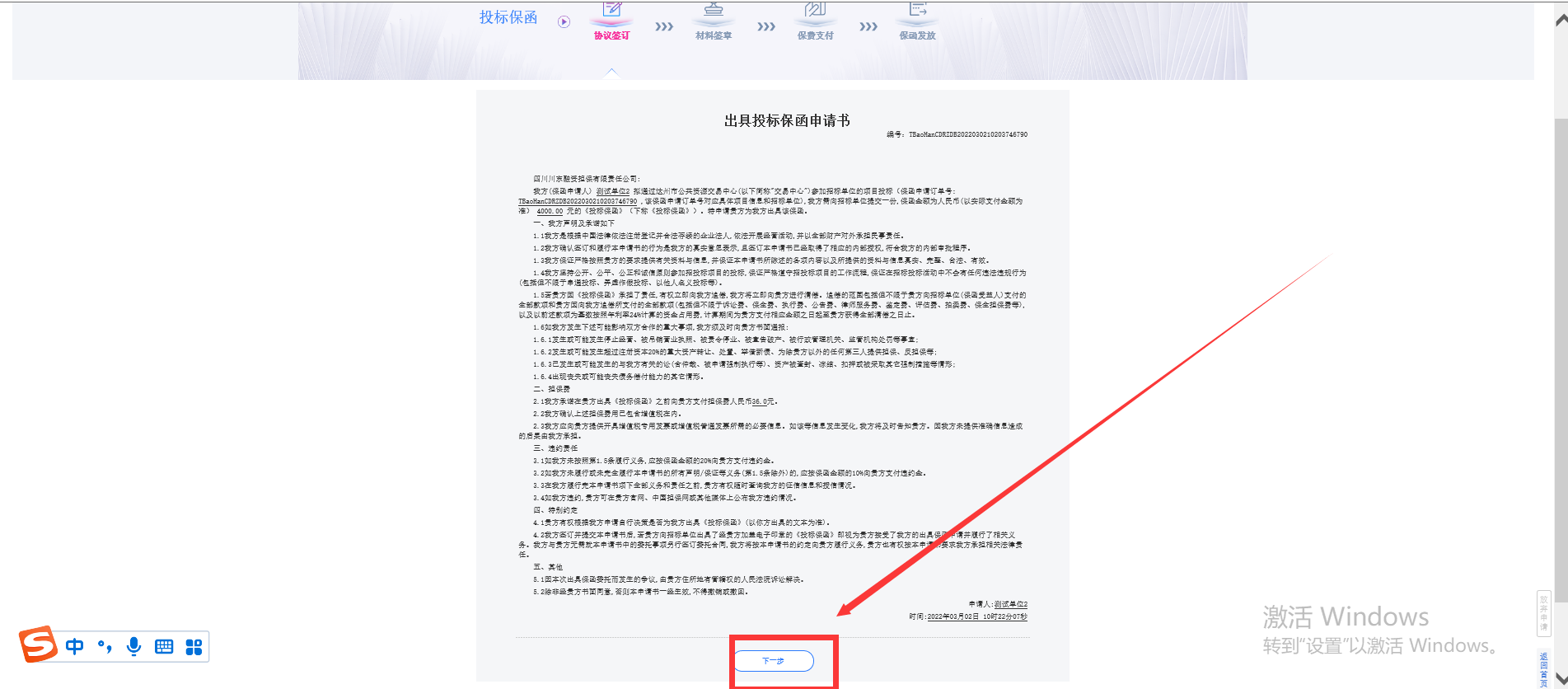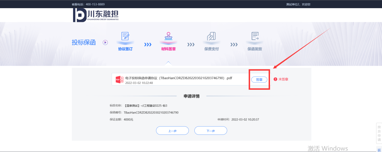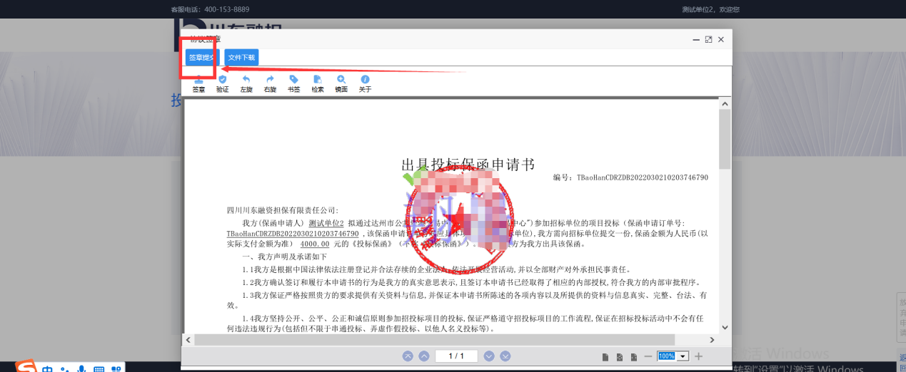 6、在“出具投标保函申请书”中加盖电子签章。