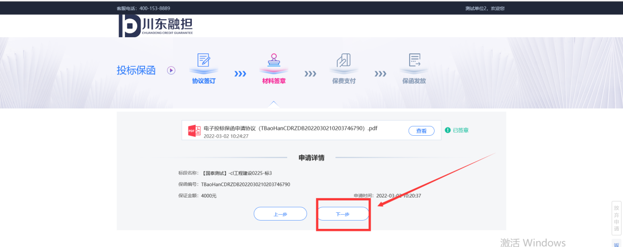 4、选择“川东融担”出具保函(费率0.9%,无最低收费)