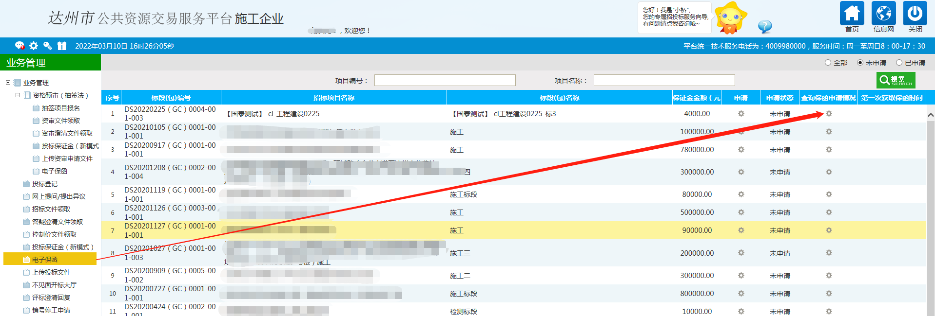 8、成功出具保函之后,投标人还需在投标保证金缴纳截止时间前进入达州市公共资源交易服务平台,从业务管理栏“电子保函”模板中打印出投标保证金缴纳证明文件。