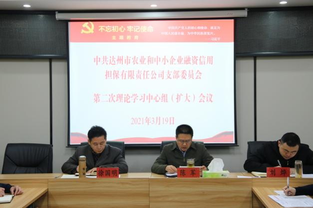 陈军同志指出,全体职工要认真领会此次理论学习内容,深刻把握精神实质,并对公司下一步工作作了部署:一是要主动融入大局,充分发挥政府性融资担保机构职能职责,缓解中小微企业融资难题,为全市中小微企业发展和乡村振兴工作提供坚强有力的金融支撑;二是按照市政府2021年工作计划部署,优化业务布局,推动业务全面开展,加快打造与“经济副中心”相匹配的一流担保公司;三是落实全市反腐败工作部署,结合公司“以案促改”工作,不断加强自身廉洁建设,抓好各项反腐工作落实;四是要在庆祝中国共产党成立100周年之际制定党史学习方案,开展相关党建活动。