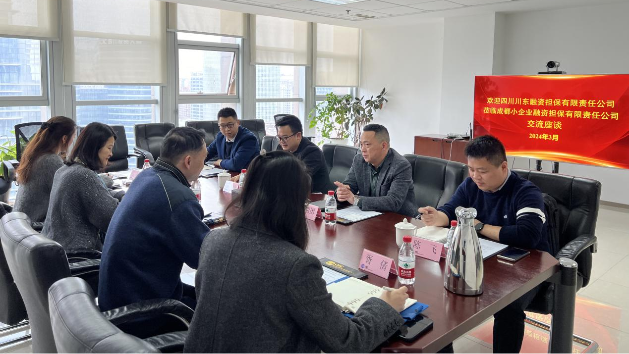 为加快推进公司转型进程,更好服务实体经济发展,3月14日,四川川东融资担保公司副总经理陈明国一行到成都小企业融资担保有限公司进行交流学习。成都小企业融资担保有限公司副总经理邓晓波及相关部门负责人参加座谈会议。
