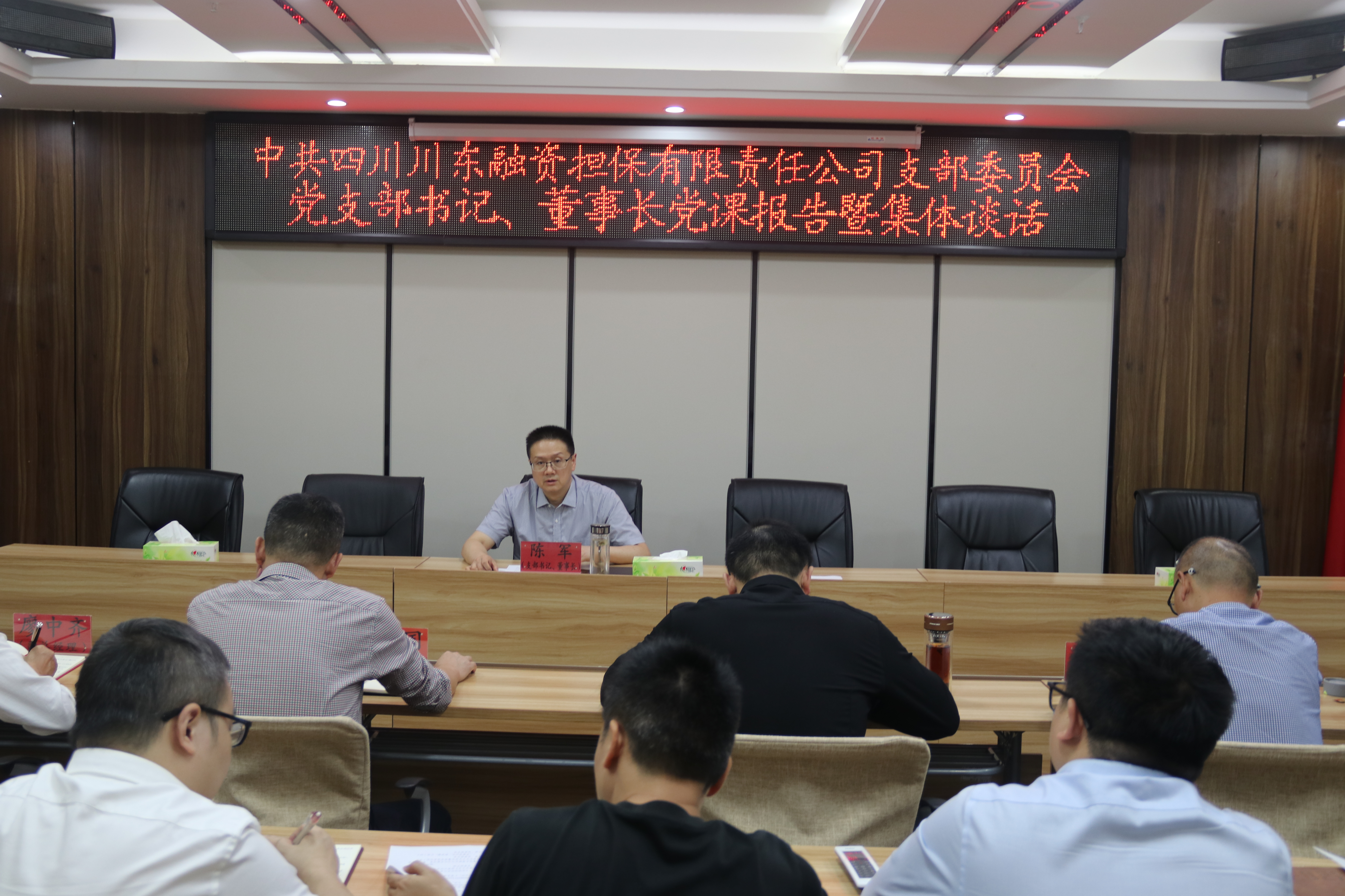 参观学习结束后,党支部举行了集中学习,党支部书记、董事长陈军以“让红色基因昂扬奋斗姿态,把作风建设贯彻发展始终”为题给全体干部上了一堂主题党课暨集体谈心谈话。