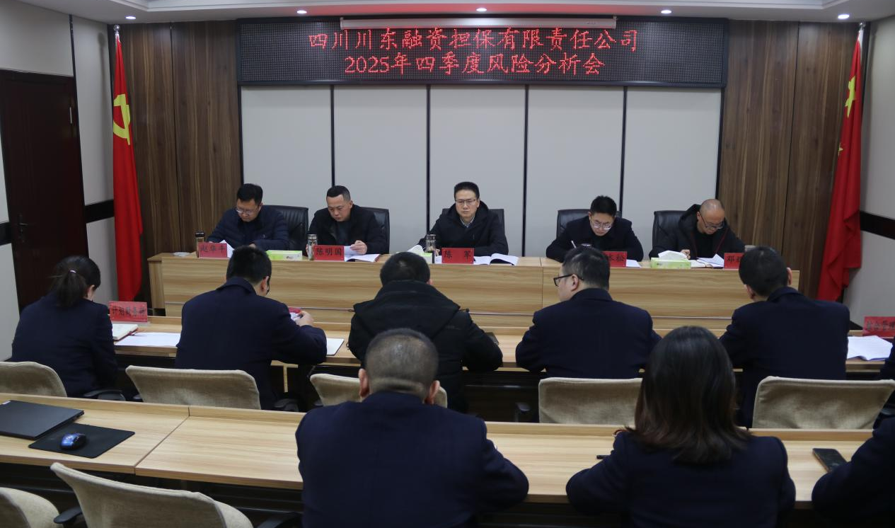 近日,四川川东融资担保有限责任公司召开2025年四季度风险分析会,会议全面总结2025年风险防控成果,分析研判当前风险态势。会议提出要深入贯彻党中央、国务院激发民间投资活力的决策部署,聚焦民间投资专项担保计划与常规融资业务融合发展。
